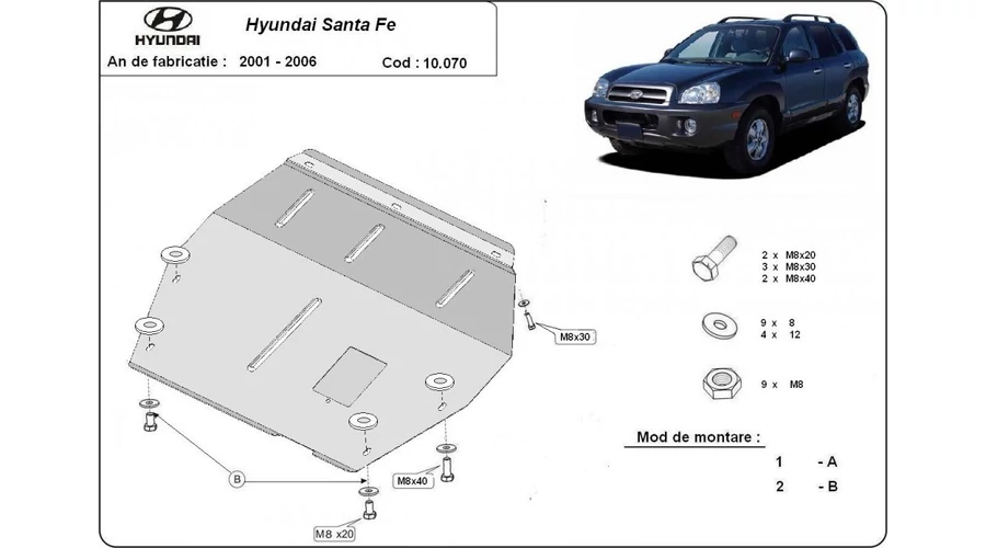 Hyundai Santa Fe, 2001-2006 - Motorvédő lemez