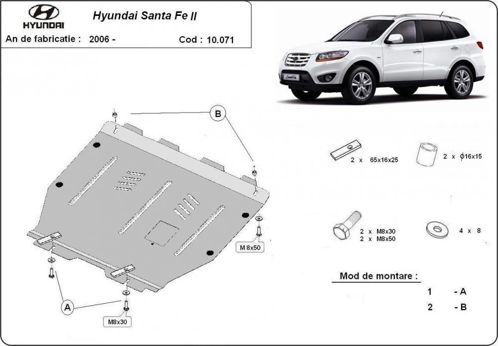 Hyundai Santa Fe II, 2006-2011 - Motorvédő lemez