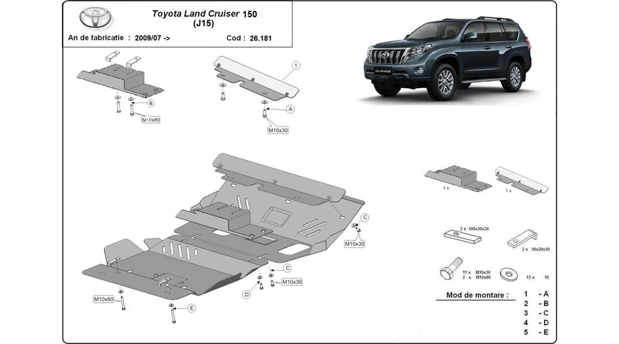 Toyota Land Cruiser 150, 2009-2018 - Motorvédő lemez